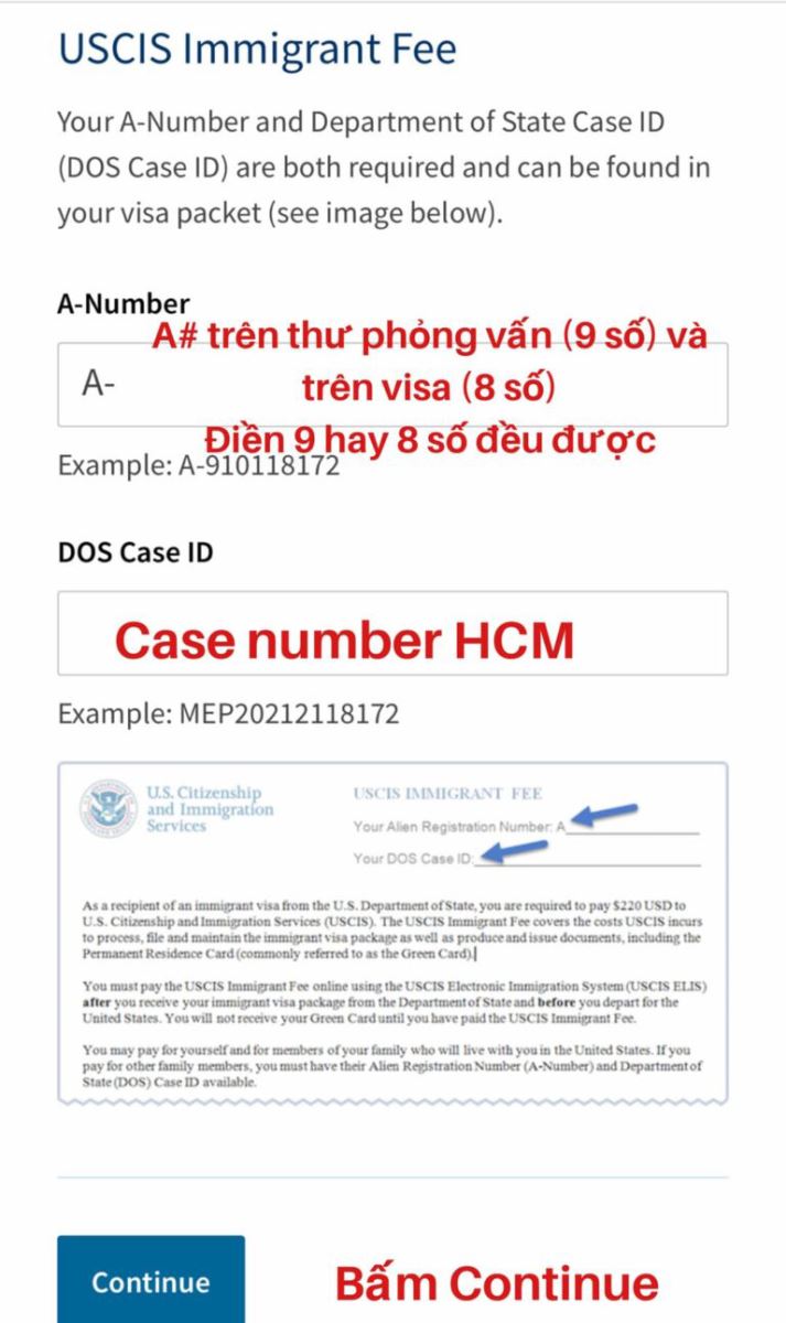 - Nhập A-Number: 8 số trên Visa (Registration Number) hay 9 số trên thư mời phỏng vấn (A#) đều được. Khi nhập vào hệ thống sẽ tự chỉnh thành 9 số (với số 0 ở đầu)