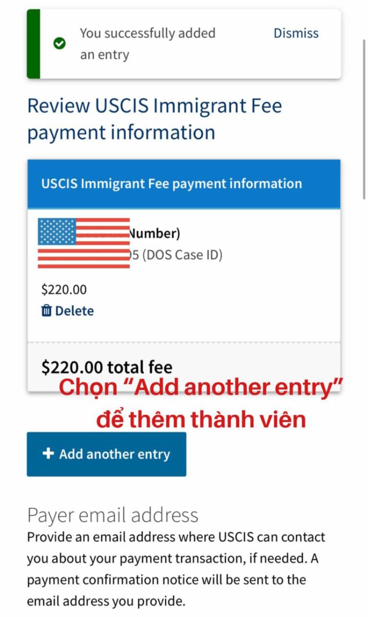 Nếu số lượng đóng >1 người, chọn "Add another entry" để thêm thành viên mới, điền tương tự cách trên.