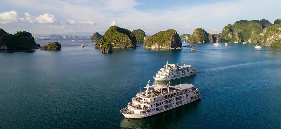 - Du ngoạn Vịnh Hạ Long, ngắm nhìn hàng ngàn hòn đảo đá vôi nhô lên từ mặt biển.