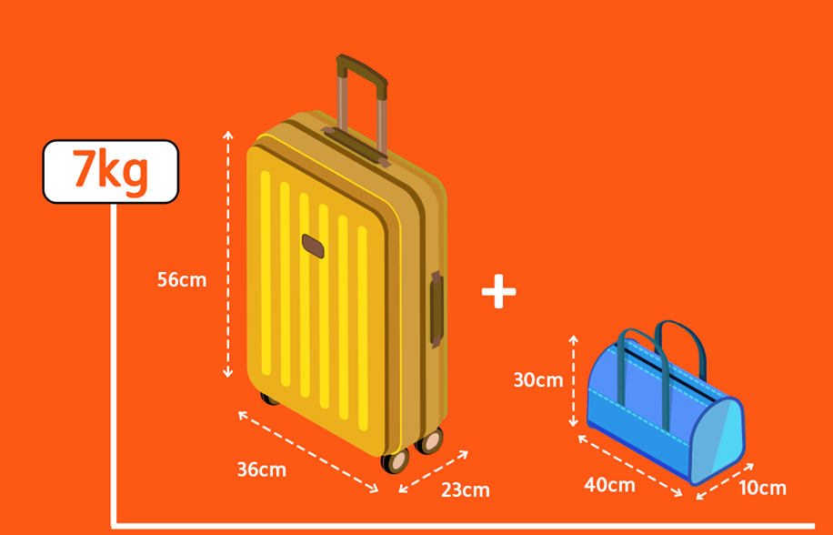 - Quý khách cần kiểm tra kỹ quy định hành lý, thường là 7kg ~ 15lbs hành lý xách tay và 23kg ~ 50lbs hành lý ký gửi, tuỳ theo quy định của mỗi hãng bay và loại vé. Kích thước tối đa: chiều dài+ chiều rộng + chiều cao: 158cm. Khi trọng lượng hành lý vượt quá mức trên, quý khách phải đóng tiền quá cước theo quy định của hàng không.