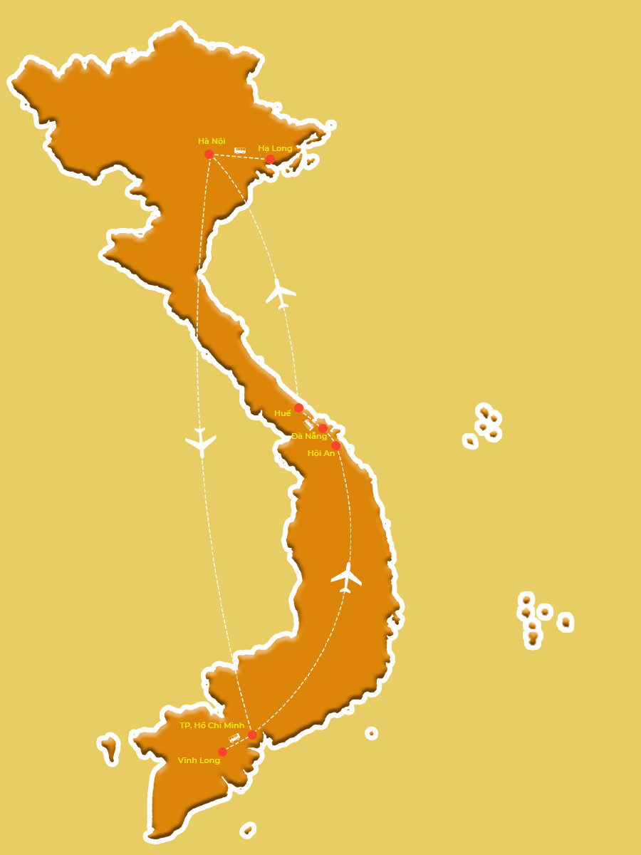 HCM - Bạc Liêu - Bến Tre - Phan Thiết - Nha Trang - Đà Nẵng - Hội An - Huế - Quảng Trị - Hà Nội - Hà Nam - Ninh Bình